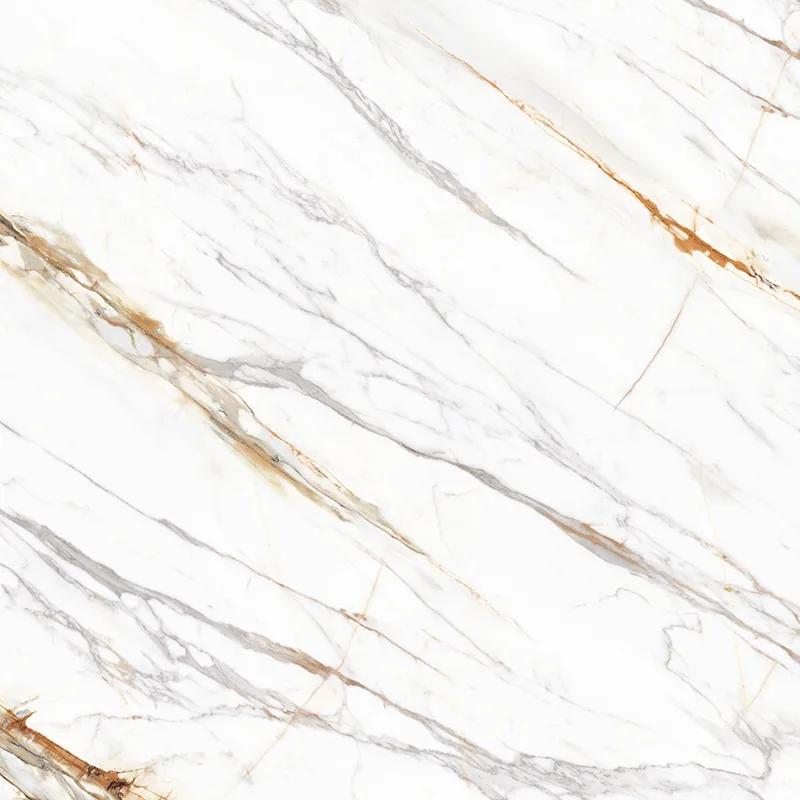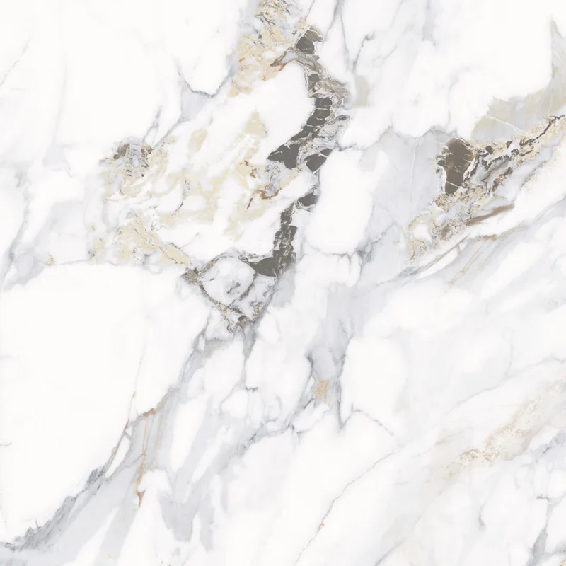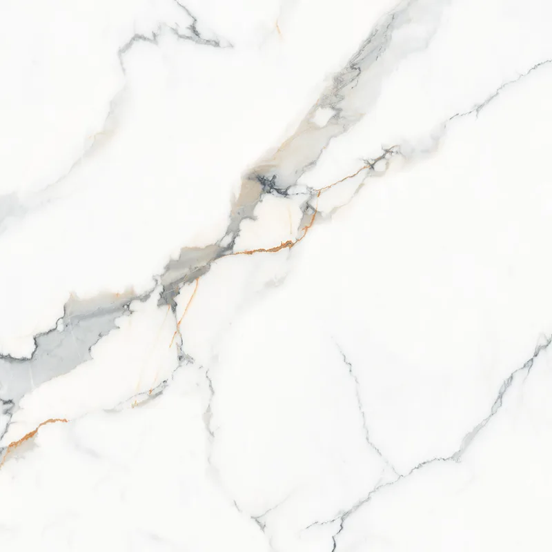 4. Carrara White Gold: Υπόλευκη βάση με τρισδιάστατες χρυσές φλέβες, κατάλληλη για κρεμώδη και σκανδιναβικά στυλ